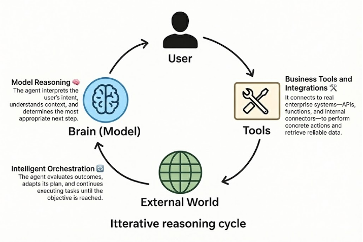Instead of requiring every rule to be programmed manually, an agent understands context, learns from previous interactions, and combines information from multiple sources to take meaningful action.